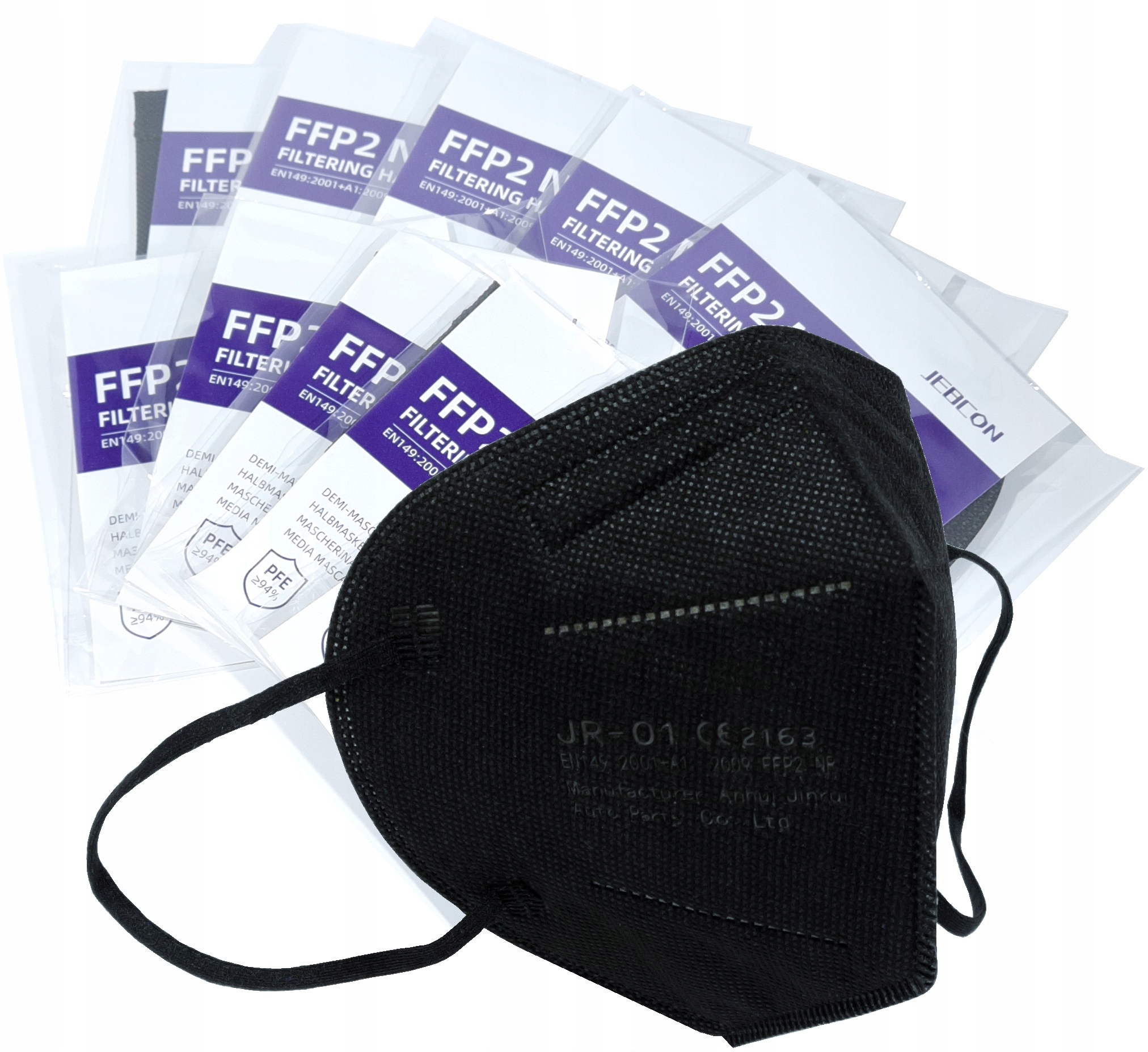 12x Maska Ochronna Antywirusowa FFP2 Czarna Ce