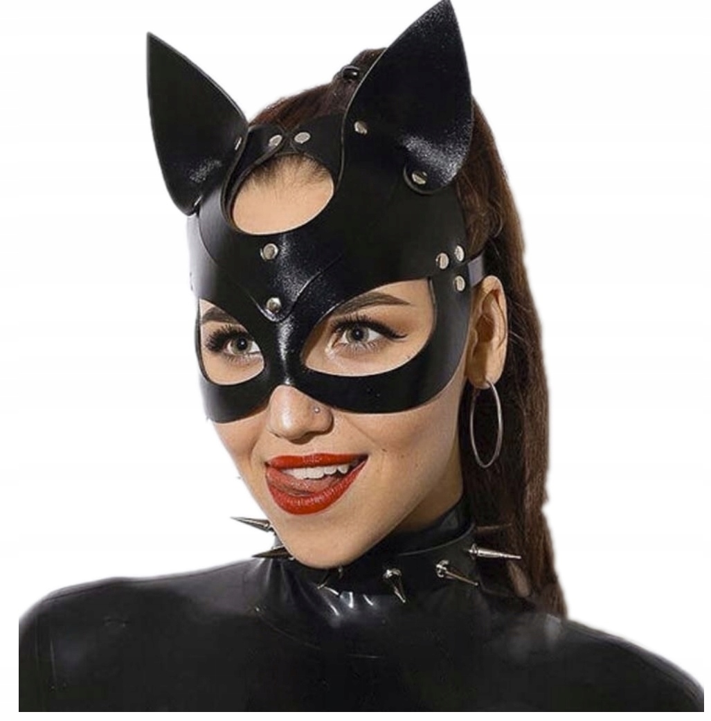 Czarna Skórzana Maska Bdsm Kotka Kocica Catwoman