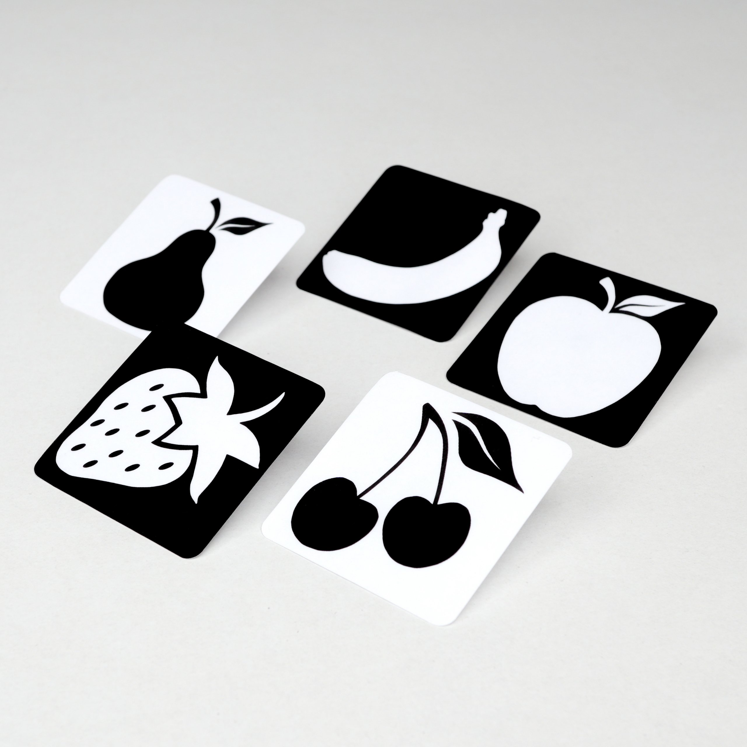 Kontrastowe karty do Mobilu Karuzeli Owoce
