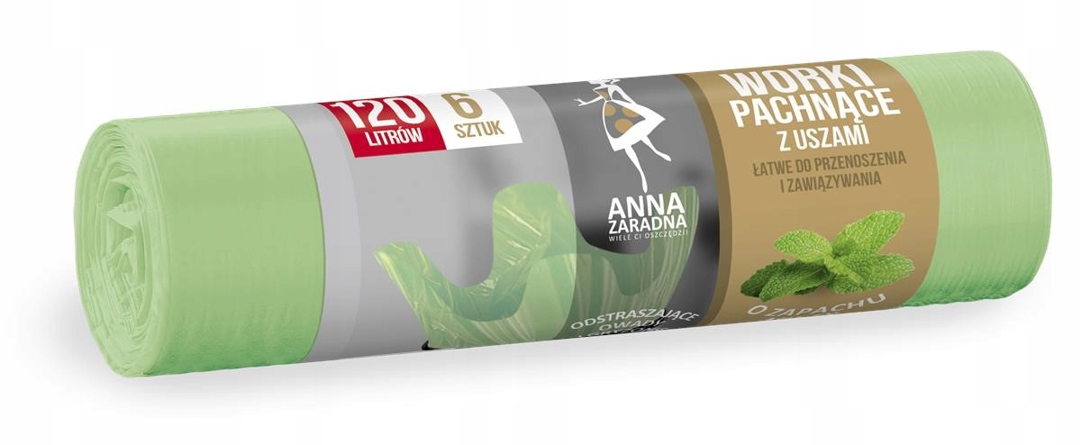 Worki na śmieci 120L 6szt z uszami zapach Miętowy