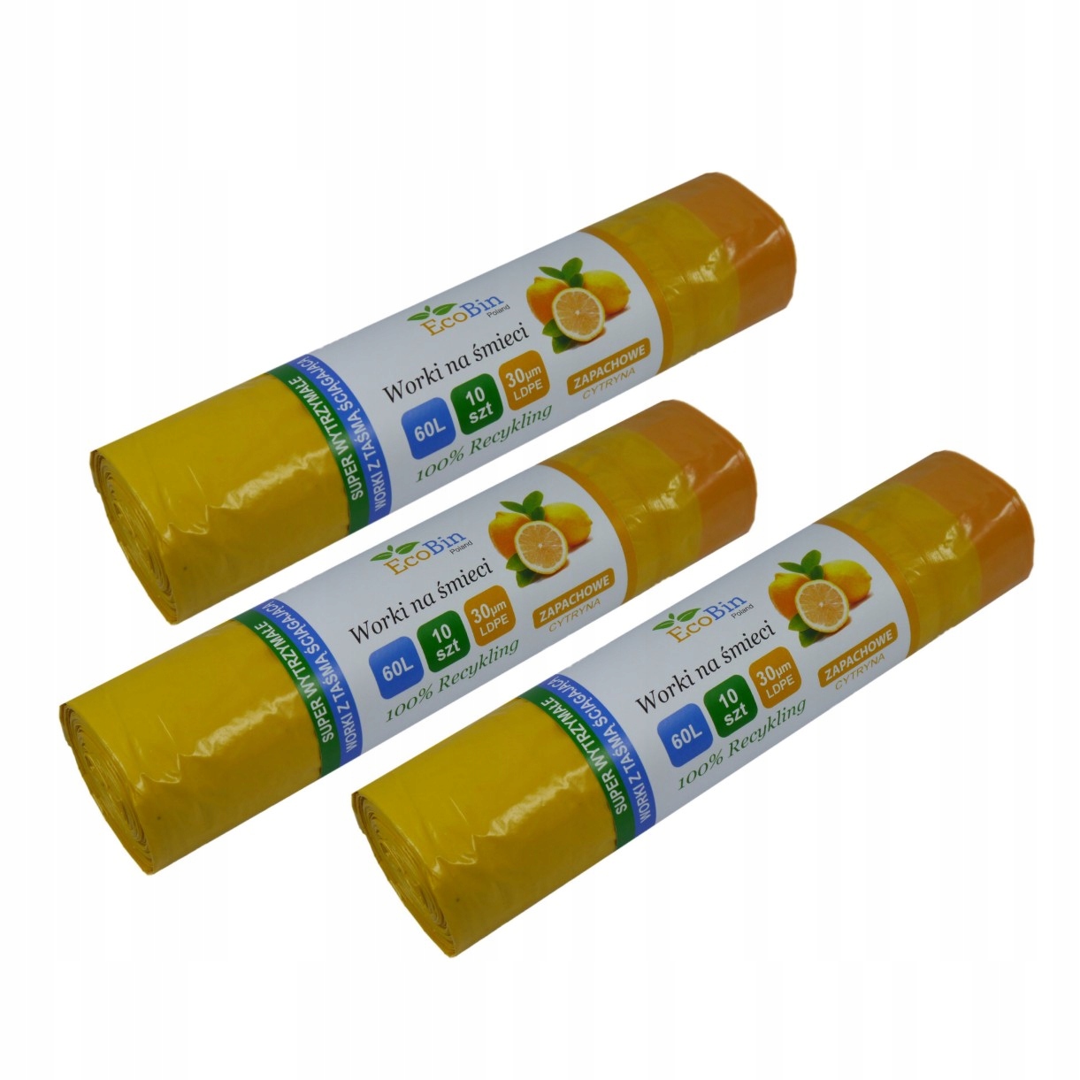 Worki na śmieci 60L 30szt taśma zapachowe cytryna