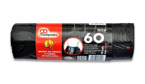 Worki Na Śmieci Z Taśmą B.mocne Czarne 60L/10SZT