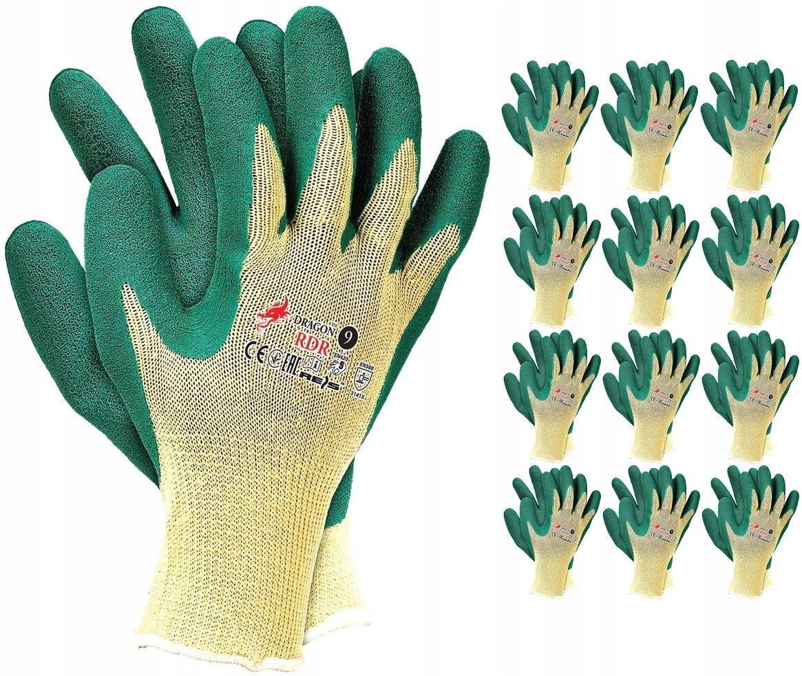 Wytrzymałe Rękawice Robocze powlekane gumą 12 Par