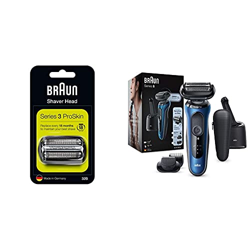 - Braun Series 3 32B Elektrorasierer Ersatzscherteil – schwarz – kompatibel mit Series 3 ProSkin Rasierern & Series 6cc Sensitiver Rasierer Herren, Elektrorasierer mit 3 flexiblen Klingen, blau
