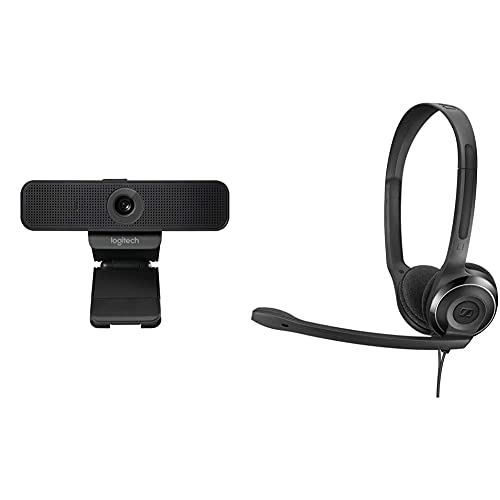 - Logitech C925e Business-Webcam, HD 1080p, 78° Blickfeld, Autofokus, RightLight 2 Technologie, Abdeckblende, 2 Stereomikrofone - Schwarz & Sennheiser PC 8 USB Headset
