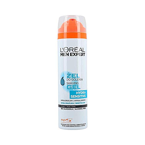- L'Oreal Paris Men Expert Hydra Sensitive Shaving Gel Hypoallergenic Sensitive Skin Alcohol-free Aloe Vera, 1er Pack (1 x 200 ml)