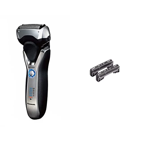 - Panasonic Nass/Trocken-Rasierer ES-RT67 mit 3 Scherelementen, ausschiebbarem Langhaarschneider, 5-stufige Akkuanzeige, Schwarz & Ersatz-Schermesser für ES-8163/62/61/68 | 2 Stück (1er Pack)