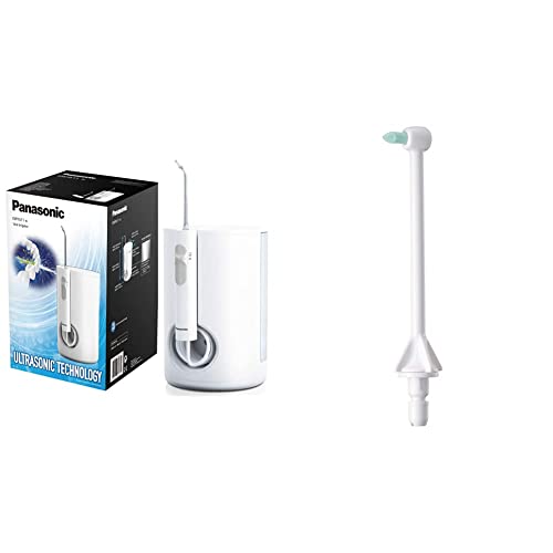 Panasonic Ultra Sonic Stream EW1611W503 Munddusche (elektrisch, Zahnzwischenraumreinigung, stationär, integrierte Ladestation, Kabelnutzung) weiß 1 Stück & Panasonic Ersatzdüsen WEW0984 für Munddusche