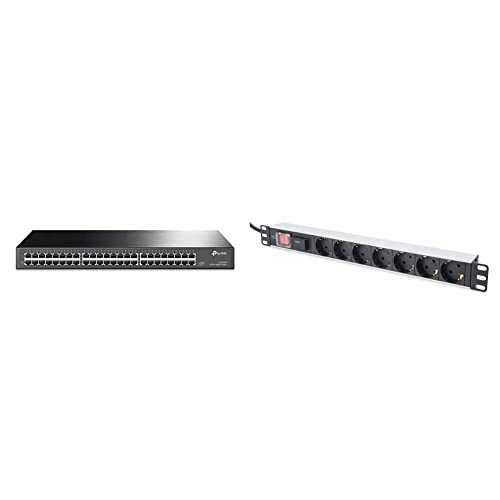 TP-Link TL-SG1048 48-Port Rackmount Gigabit Switch (Plug&Play, Gigabit Ports, Metallgehäuse, DIGITUS 19“ Steckdosenleiste - 7 Abgriffe - 1HE - 250VAC - 50/60Hz - 16A - 4000W