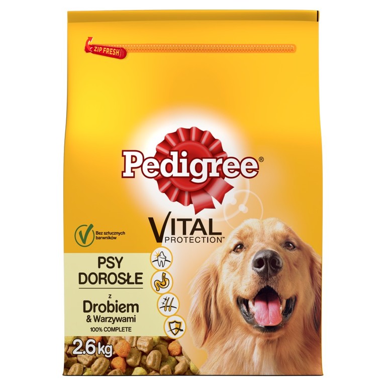 - Pedigree Vital Protection Psy dorosłe Karma pełnoporcjowa z drobiem & warzywami 2,6 kg