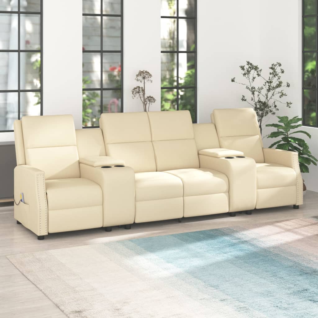 - vidaXL Atlošiamas keturvietis masažinis krėslas, kreminis, oda