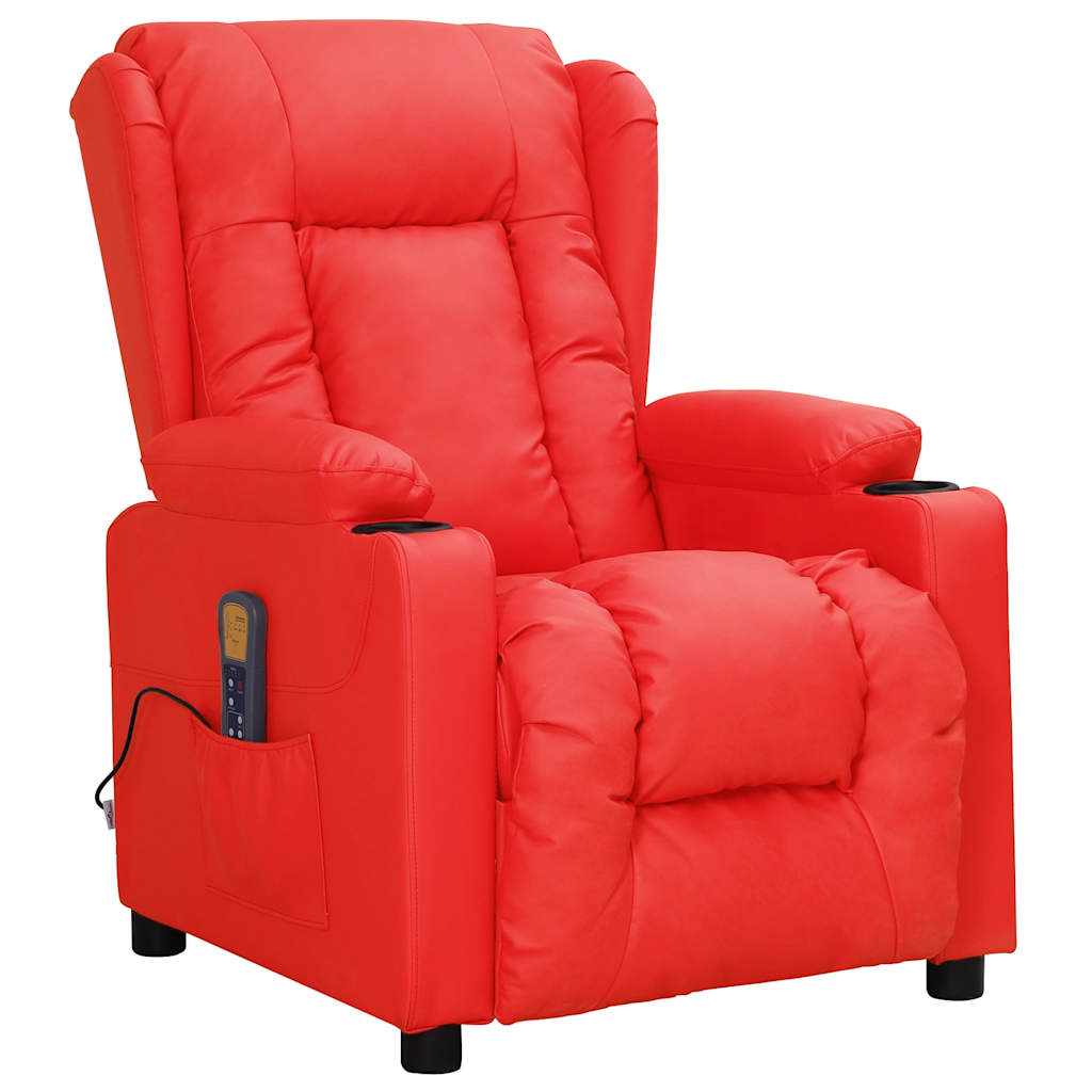 - vidaXL Atlošiamas masažinis krėslas, raudonos spalvos, dirbtinė oda