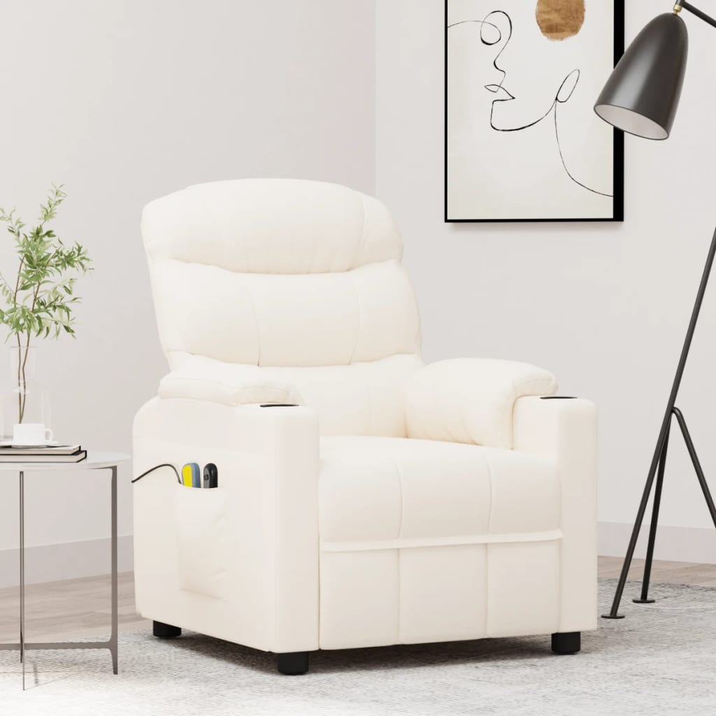 - vidaXL Atsistojantis masažinis krėslas, kreminis, dirbtinė oda