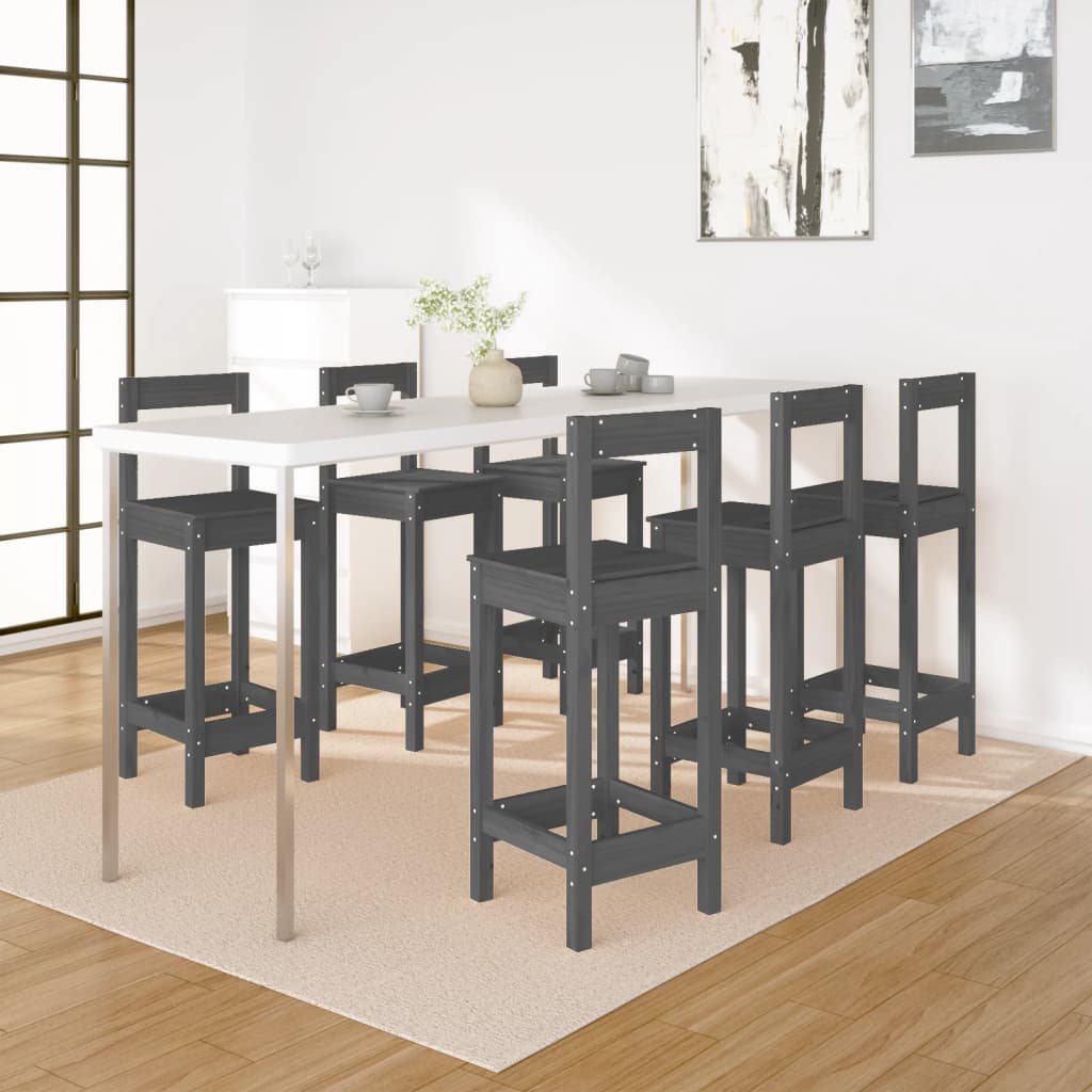 - vidaXL Baro kėdės, 6vnt., pilkos spalvos, pušies medienos masyvas