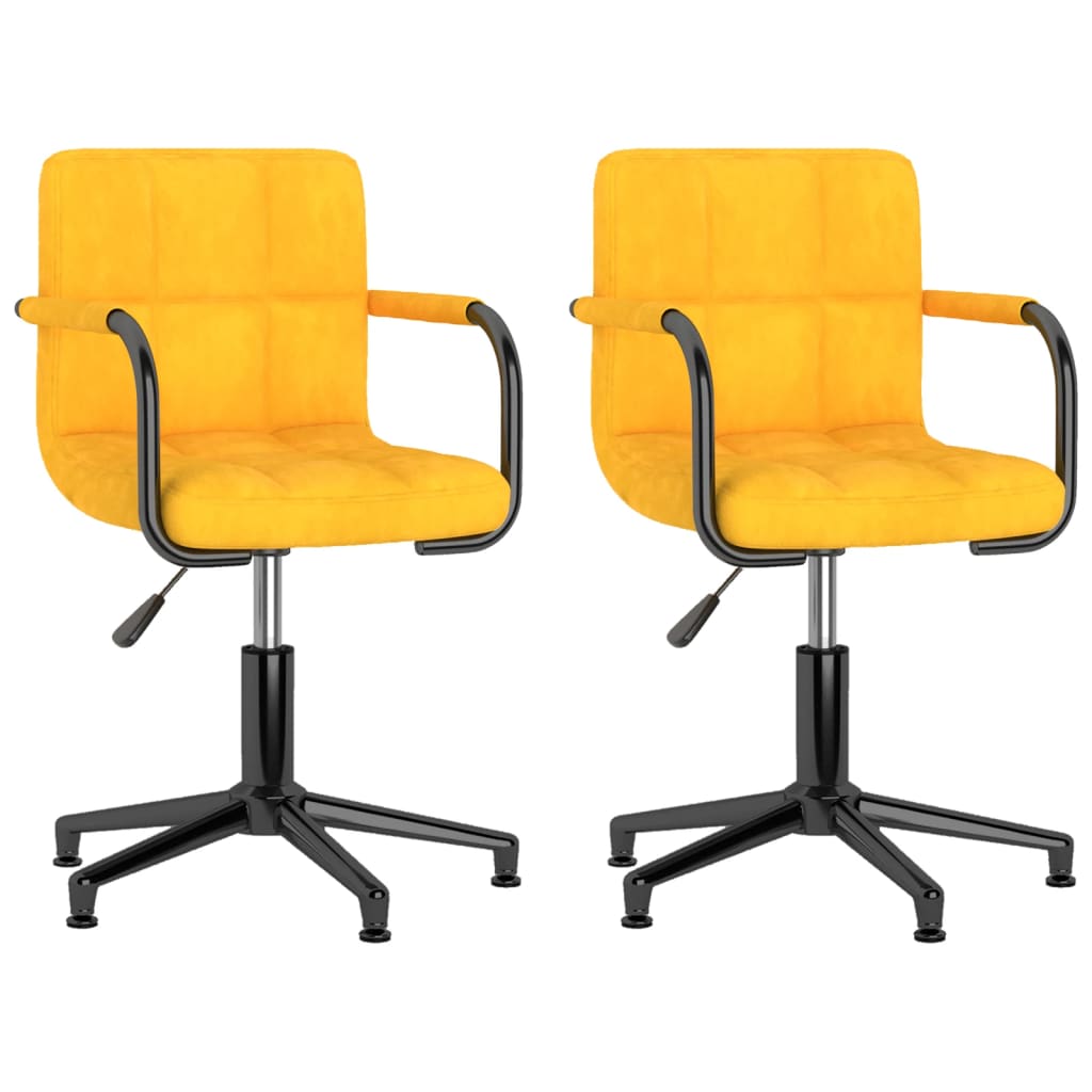 - vidaXL Pasukamos valgomojo kėdės, 2vnt., garstyčių geltonos, aksomas